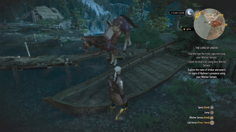 While the gate glitch in Crow’s Perch was kind of funny, the time that Roach glitched out on a bridge, again in Undvik, was not. Now, I’ve noticed that Roach doesn’t seem to like bridges, so maybe this was inevitable, but boy oh boy did she ever get so stuck on the end of this bridge. As we rode over this bridge, I accidentally veered her toward the left. and in some bizarre way, her front two legs stuck right where the bridge met land, while her back legs flailed and contorted in the air. I was able to dismount, but then, the game wouldn’t let me back on her. I actually felt bad leaving her there, but I had to in order to recall her into another area. I get that Roach is “magic” in that way, but still, this glitch was straight bad.