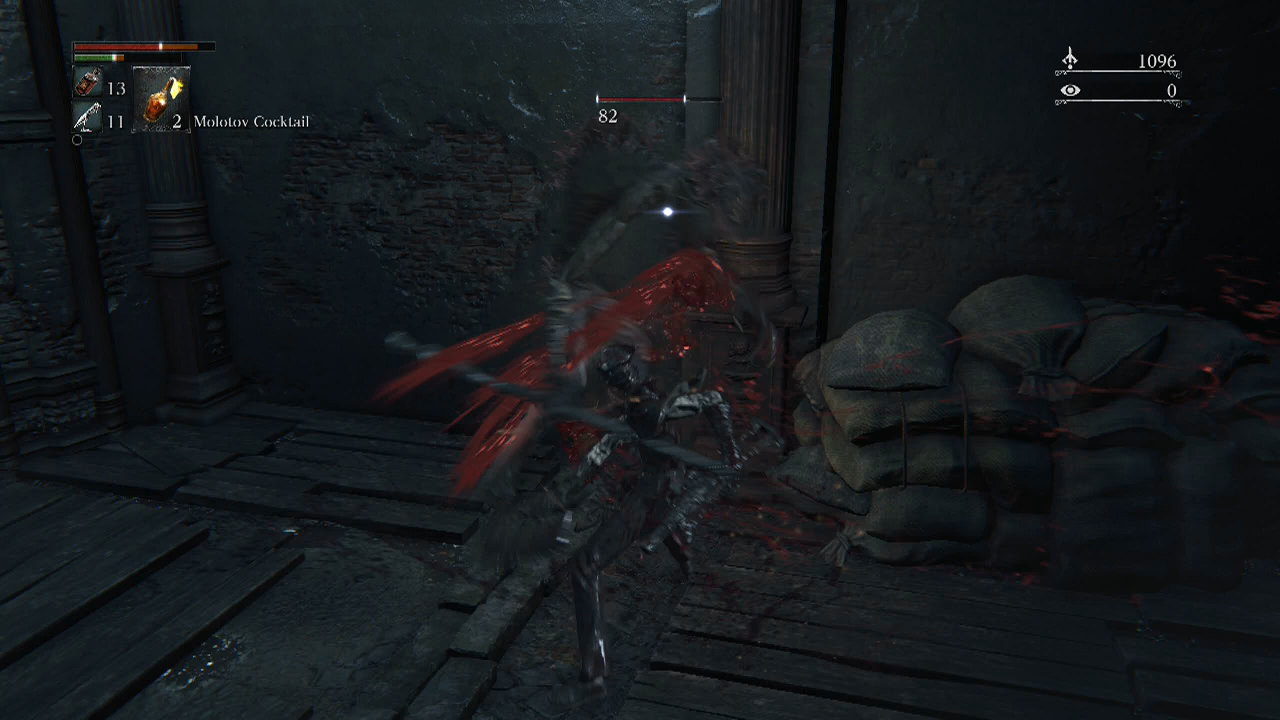 Whilst I think that the weight of one’s equipment having an effect on stamina recovery and roll speed is a very clever mechanic, it wouldn’t make sense to include it within Bloodborne. The reason being is that because the combat is so fast heavier equipped players would always be at a disadvantage, Bloodborne is all about perfecting dodging and is much more gung-ho than Dark Souls and Demon’s Souls. Sitting back with a massive suit of armour on and trying to defend would not work at all. The equip load statistic may be gone, but I don’t miss it.