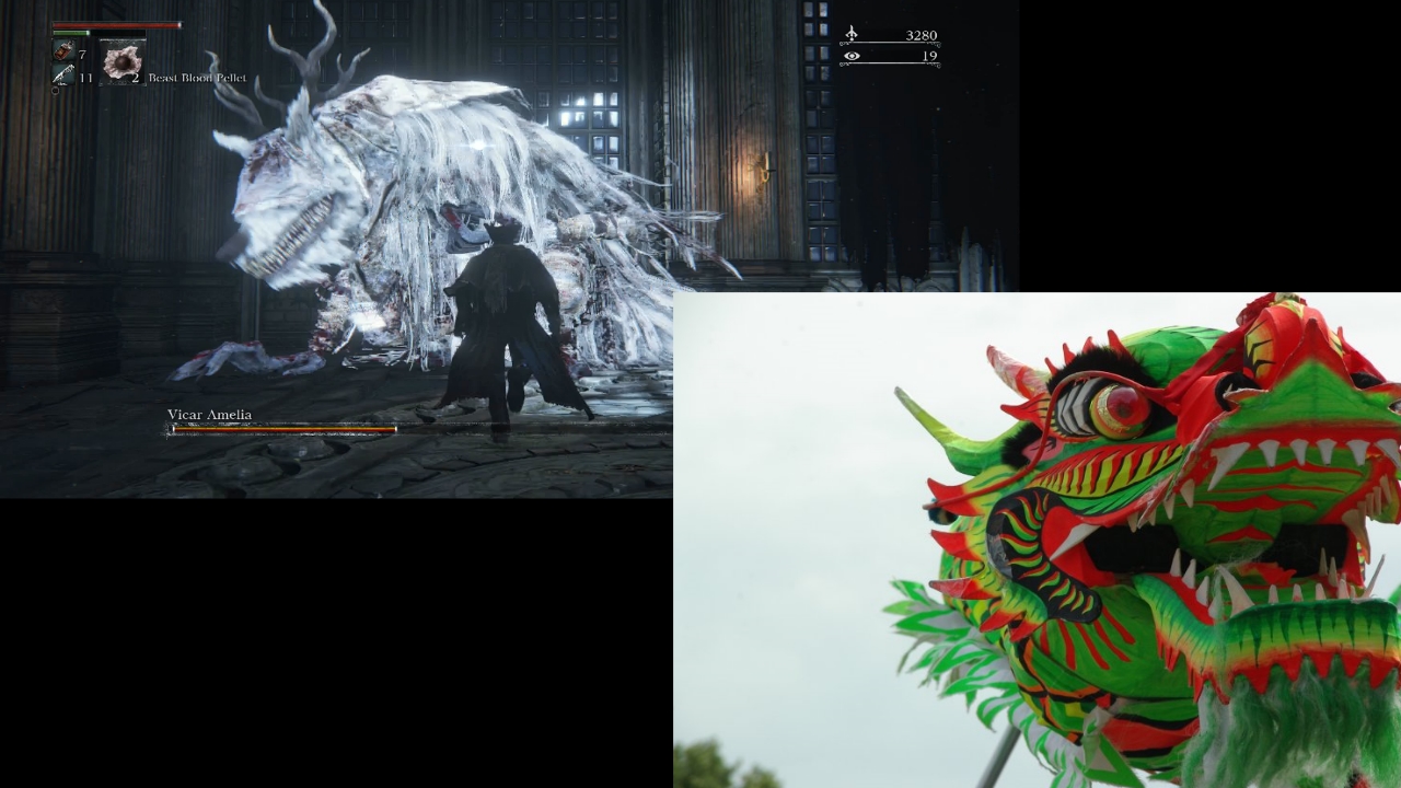 The Cleric Beast just resembles some kind of messy giant tree, The Blood Starved Beast looks like a giant blob, and Vicar Amelia looks a combination of Amaterasu on drugs and something that could be found at a Chinese Dragon parade.
