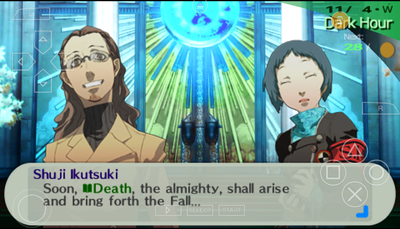 Meanwhile what of this whole thing with Nyx? Well, during the fall semester, a new kid named Ryoji mysteriously arrives at school. He’s befriended by Junpei and becomes accepted in the SEES’s dorm. Aigis is immediately suspicious of him, though. Long story short, Ryoji isn’t human at all. He’s the herald of Nyx, a harbinger of death. No matter what, Nyx is coming, but at the beginning of December, he offers Jin, et al, a choice. Kill him on December 31st to erase any memories of the Dark Hour and all that has transpired, thereby allowing everyone to live normal, happy lives until the inevitable cataclysm. Or, don’t kill him and face off directly with Nyx, an absolutely unbeatable enemy.