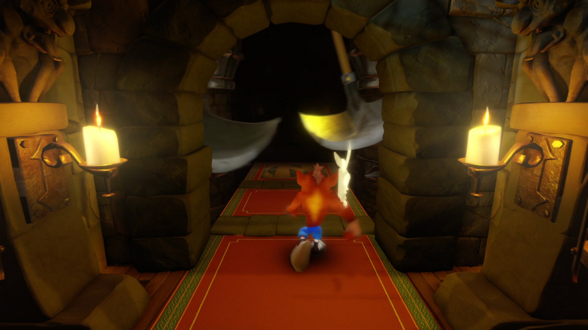 2 – Fumbling in the Dark: The only good thing about this level is the fact that it’s optional.  Similar to Lights Out, you need to move quickly through the dark corridors of Dr. Cortex’s castle before the light from Aku Aku goes out.  All the while, you have to deal with bottomless pits, moving platforms, and plentiful swinging axes.  Worse yet, you lose your light source if you take any damage, which proves fatal quite quickly because, trust me, you can’t see…anything!  Fumbling indeed!