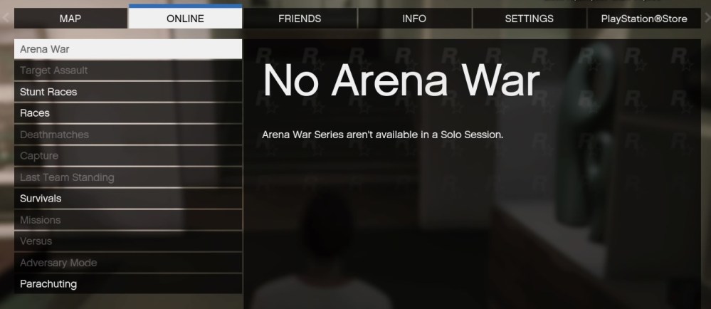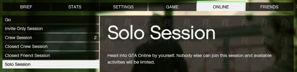While a Solo Session might sound like the best of the best when it comes to private play — “nobody else can join this session” could be music to one’s ears! — the option goes on to say that “available activities will be limited.” How limited? Very limited! In a Solo Session, not only can you not do any Freemode setups, but you also can’t do most of the jobs.