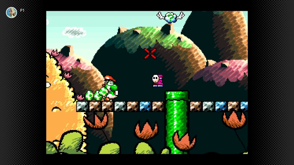 Yoshi’s Island is extremely cute and charming, with a fun soundtrack and an exceedingly adorable color palette that almost makes the environment look like it was colored with crayons. But don’t let that fool you. Because as adorable as this game is, it’s actually very challenging (and just a tad frustrating), something its cute exterior might have you believing otherwise.