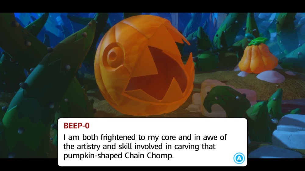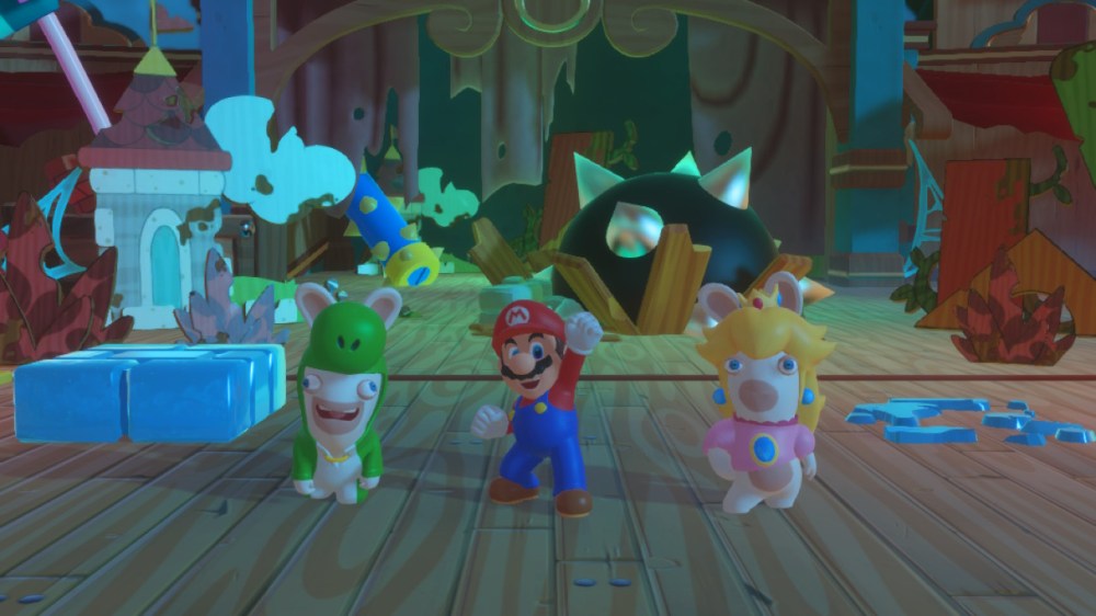 Technically, though, Mario didn’t exactly lead the way throughout the game. That task was taken on by an endearing if somewhat mouthy robot named Beep-0. Like any good leader, Beep-0 always seemed to know just what to do at the right time, especially since he had a mysterious stranger named “F.B.” helping from afar. (I won’t spoil it, but the reveal of “F.B” was nicely done.) Beep-0 could perform various tasks, such as move block or carry objects, and garnered new abilities throughout the game. (Before the final boss, I attained most but not all of them, so it seems I have more to do.) While Beep-0 was a necessary part of getting from level to level, his abilities also opened up secrets upon secrets, so many secrets! Mario + Rabbids Kingdom Battle isn’t a huge game, but it’s designed with different planes of movement. If you’re just following the arrows to the next battleground, it’d be easy to miss secrets passages leading above or below or around or behind.