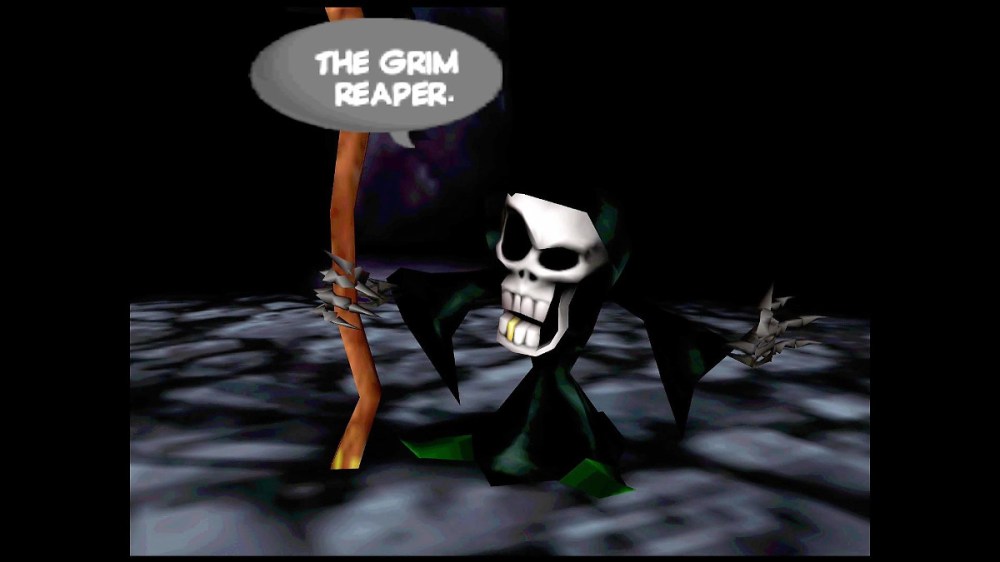 To start my celebration of Spooptober, I figured I might as well start at the end…of life! Versions of the grim reaper are common in games, but Gregg, well…he’s a bit uncommon. Players of Conker’s Bad Fur Day meet up with him upon Conker’s first death. When fully knocked out, Conker wakes up in a dark and foreboding place with but a single, deep voice permeating the ether.