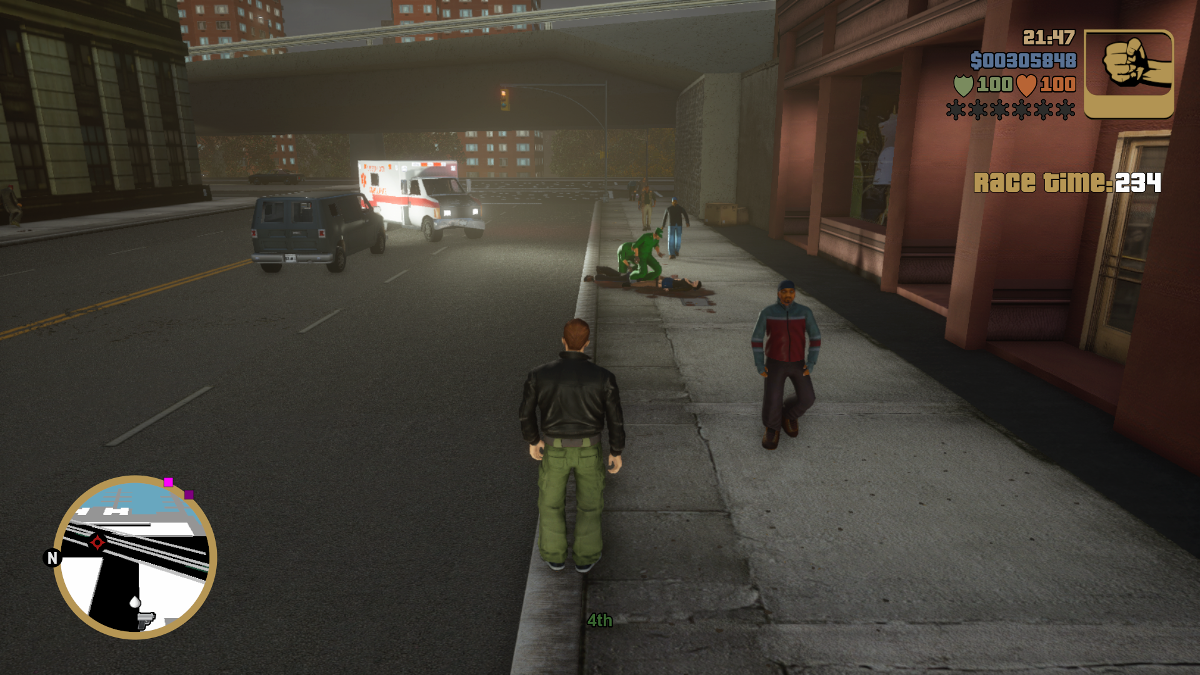 The other big problem I encountered was glitchiness. So many glitches! Rockstar did attend to some of these issues — they fixed the rain, at least! – but as far as my copy of the game goes, the glitches were pretty consistent. At first, most were on the silly side, like cars stuck in the air and people walking through each other. But as I progress, and as I opened up more of Liberty City, the glitches became more numerous, and more annoying. During a couple missions, my weapons magically disappeared. Another time, my specifically-parked getaway vehicle disappear and reappeared down the street. And one time, I had loads of fun falling through one of the city’s bridges, which led to a literal crash (and me restarting the game). But the worst offender of all was the traffic. Yes, traffic is a (purposeful?) headache in GTA games, but GTA III, there came a point where cars started materializing on the road out of thin air, and always right in my speedy path. Not cool, man. Not cool.