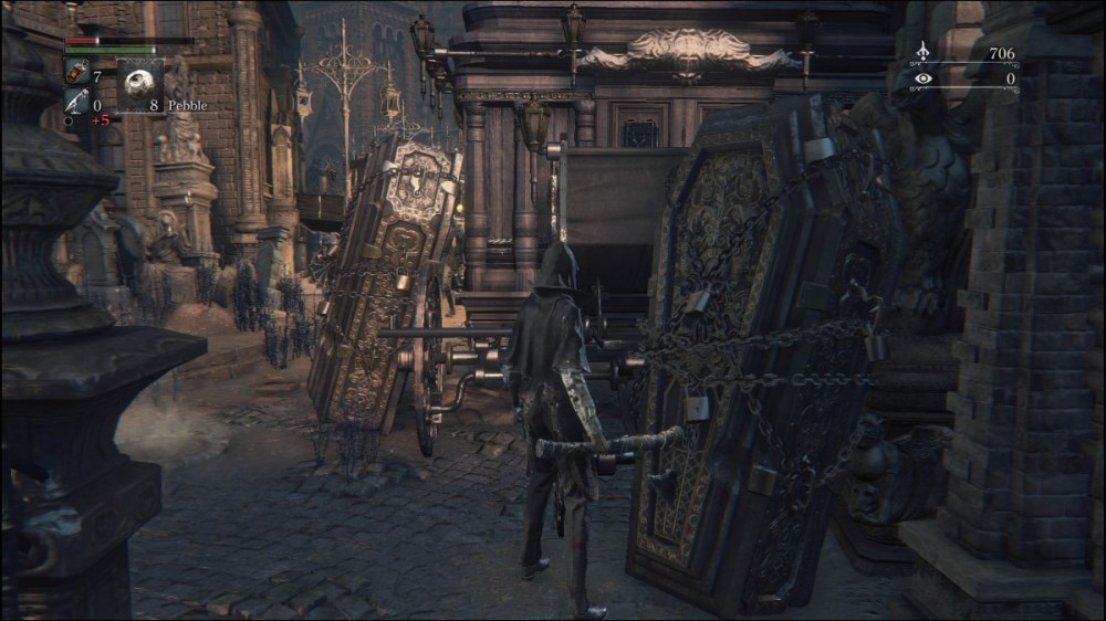 One of the key elements of Bloodborne is that dying means losing all of one’s Blood Echoes, the game’s main currency that’s used in a variety of ways. As it goes, one can re-obtain lost Blood Echoes by gathering them directly from the previous point of death or by defeating an enemy that’s absorbed them. I never got to a point where I was overflowing with Blood Echoes, but even so, losing them all and ended up with zero, while disappointing, was never overwhelmingly terrible. Not only did I know I could get them back if I tried, but I knew I could obtain more by defeating more enemies. I’ve played plenty of games where even just starting from a previous save point felt supremely deflating, and that was without having lost anything important. Starting from scratch in Bloodborne was simply that, starting from scratch and trying again. It was only the Blood Echoes that were lost upon death (and not always all of them); other things gathered were always retained, which was very helpful and never made it seems as if I had truly lost much ground.