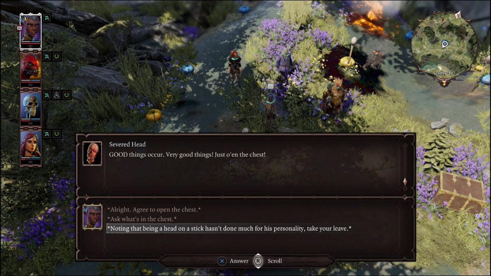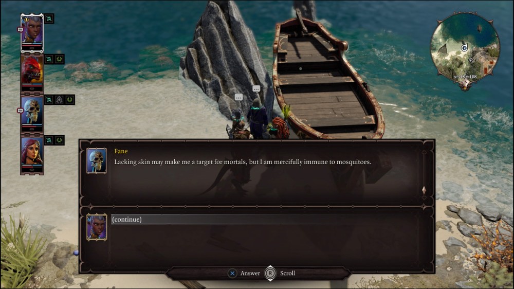Besides feeling a little behind the curve in DOSII, the other things that made me feel dated were its approaches to inventory and combat – namely that I was responsible for absolutely everything. I will readily admit that I don’t like, or at least, no longer enjoy managing companions in games. I like having companions just fine, and, whenever might be the case, I like tackling missions in which they are involved. But I don’t want to think about their equipment or tactics, sorry. And yes, before any DOSII players call for my head, I knew this was a tactical RPG going in. I expected that I’d have to make some per character choices. What I didn’t know was just how deeply those choices would cut throughout the game. My goal in playing this or any new title is always to try something that might be, at first, a little uncomfortable. The hope is that discomfort will ease into comfort with practice. I’m not there yet with DOSII, and my present feeling is that I’m probably not going to reach that point with it anytime soon.