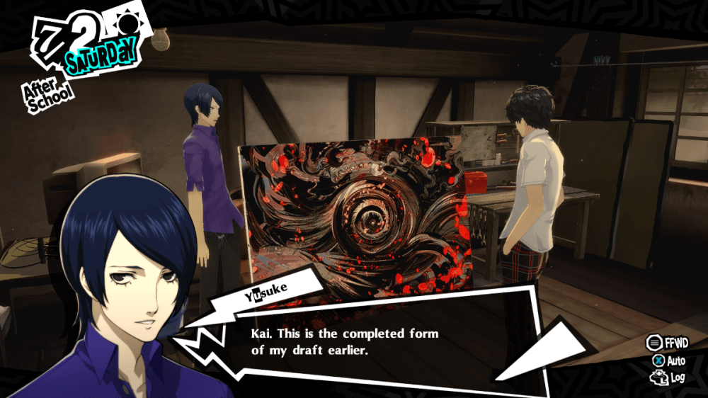 As much as Kai’s surroundings and social life have expanded, so too have the Phantom Thieves. Students Yusuke Kitagawa (“Fox”), a burgeoning artist, and Makoto Niijima (“Queen”), class president, have joined the ranks. Yusuke’s story unfolded in conjunction with the second palace the thieves faced, Madarame’s Museum. This fanatical and fantastical space from the mind of famed “artist” Ichiryusai Madarame was as amazing to explore as it was off-putting. Serving as foster father and mentor to Yusuke, it was difficult to watch Yusuke’s reactions as Madarame’s true nature was exposed. That he was a fraud, had been stealing works from his students as passing them off as his own, and conceived his greatest “work” out of Yusuke’s pain. In defeating Madarame, Yusuke lost his muse and way with art; his future, it seems, lies in Kai helping him find his way back. As much as I’ve enjoyed Ryuji’s spiritedness and Ann’s ebullience, Yusuke is so far my favorite of Kai’s friends. He’s been truly genuine, caring, and I very much want to see him become an artist. I hope that’s how things turn out, but this game has thrown its share of curve balls.