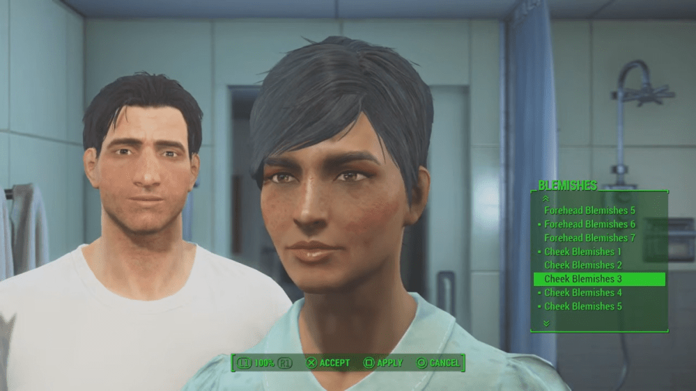 Any time I can make my characters look less like porcelain dolls, I’m all for it. Give me freckles, birthmarks, acne, spots, scratches, bruises – anything to add some personality! I’m not talking here about scars or tattoos; I’m thinking more along the lines of imperfections that might add to a character’s backstory. Like, my vault-dweller developed some sort of skin rash while underground, which left her with deep pock marks on her cheeks and forehead. It’s a sensitive issue, so once out in the world, she always keeps her face covered in some way. Everything changed when she met Robert… Being able to add facial flaws like this to a character can add up in big ways down the road, at least as far as one’s headcannon goes.
