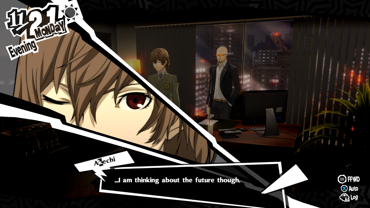 Kai and the gang eventually welcomed Morgana back into the fold (all was forgiven), and Haru, too, though she was still weak as far as her persona went and couldn’t immediately participate in the gang’s comings and goings. Still, they all quickly became friends and learned that Haru had quite the green thumb (i.e. she liked to garden). Meanwhile, the Phantom Thieves’ popularity skyrocketed after they suppressed the hacker group Medjed and its threats, and change-of-heart requests flood the site that their friend, Mishima, is administering. On the downside, the continue to attract attention from the law in the form of Makoto’s prosecutor sister, Sae; and ace detective/friend(?) Akechi. The thieves take notice but continue to help folks in Mementoes, that seems as endless as ever. In the real-real world, Kai also takes on yet another part-time job and continues to hang out with friends when he can, especially Shogi player Hifumi. She’s just too sweet.