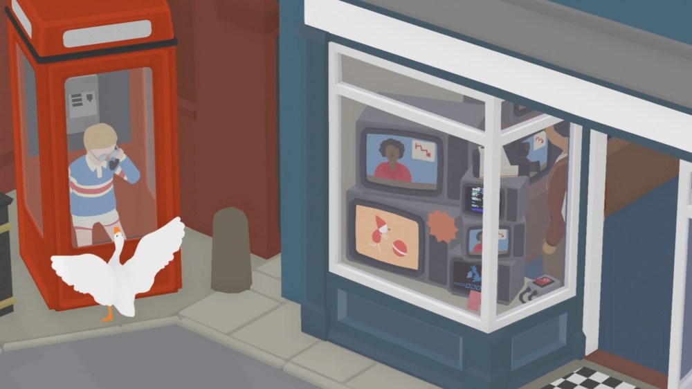 The game includes four main locations (and a fifth, shorter one at the end), each of which provide you with a to-do list of all sorts of terrible tasks for you to commit. You will be stealing and terrorizing your way through this otherwise quaint village, not to mention honking your little goosey lungs out as you attempt to cause as much aggravation as possible. Seeing as the gameplay consists of stealth and puzzle elements, you’ll have to avoid and outsmart the townspeople in order to complete your list of dastardly errands. These puzzles could often be pretty fun as I would attempt to figure out just how I might carry out my wicked deeds, and most of the time, the solutions made logical sense once you put your mind to it.