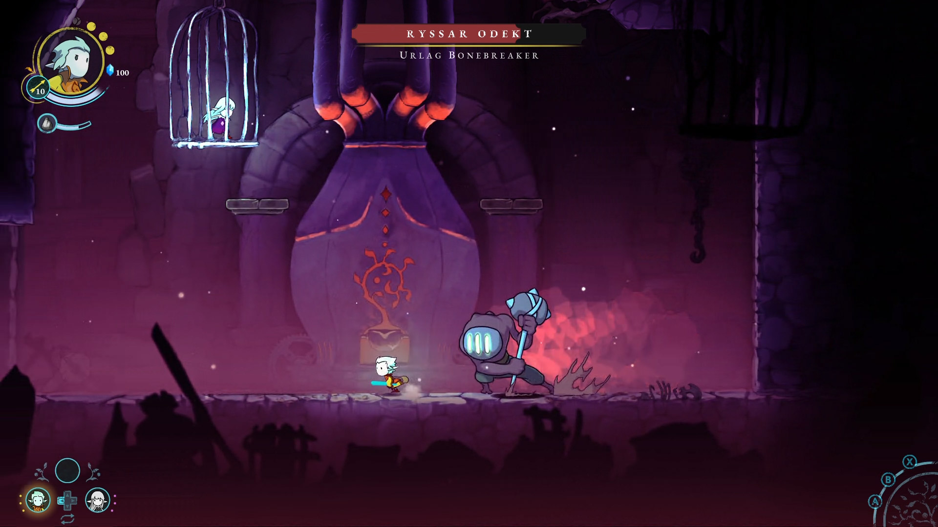 Greak’s difficulty and artstyle give it some Hollow Knight vibes, though this game is also far smaller and only took me about 8 hours to complete. One feature that increases the challenge is the fact that healing items take some time to work, so you’d best be prepared to avoid enemy attacks until they take effect. While I generally enjoyed the difficulty level of the game, it could get rather annoying when it came to the boss battles. Difficult encounters with larger enemies is totally fine on its own, but the problem arises when you’re attempting to survive these battles with two or even three characters. It’s just not terribly easy to swap between multiple characters and heal them (especially with the delayed effect of these items) in the middle of a hectic battle. I actually fought the final boss with just one character and got through on my first try because I didn’t have anyone else to worry about.