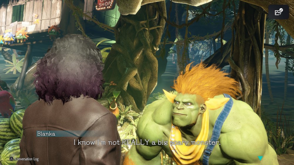 I should note that going into SF6, I didn’t have much in the way of character knowledge. I knew names, faces, moves, and the broadest strokes of SF’s universe, but individual backstories? In them I was definitely lacking. So, did I know that the fierce-looking, jungle-faring Blanka was a big ol’ softie when it came to his mama? I did not! Giving him a special locket in which he could keep a picture of his most favorite person in the world was so endearing that it made me look at Blanka in a whole new light.