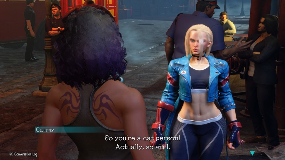 In hindsight, it totally makes sense that of all SF characters, Cammy would be a professed cat person. Cats are ferociously independent, slightly grumpy, but offer the sweetest snuggles to those they deem worthy. That’s Cammy in a nutshell. This genetically-engineered super soldier has had a difficult life, and it turns out that cats are the things to which she turns for comfort and affection. Upon receiving a key chain with a cute acrylic cat on it, Cammy’s heart goes all a’ flutter. If you know Cammy, then the scene is just as awkwardly adorable as you’re picturing.