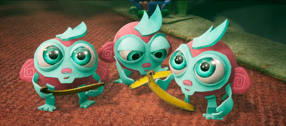 Sackboy: A Big Adventure opens with scenes from the bustling town of Loom in Craftworld. There Sackpeople of all sorts work, play, build, and grow. Loom is a very happy place until, one day, a big, bad villain named Vex shows up to wreak havoc across the land. He begins vacuuming up the poor, helpless Sackpeople so that he can make them work on his terrible Topsy-Turvy machine, with which he plans to take over Craftworld. Sackboy, however, avoids Vex’s evil-doings, manages to steal the plans to the Topsy-Turvy machine, and escapes Loom. With the help of a guide named Scarlet, Sackboy begins traveling around Craftworld to stop Vex’s plans by gathering all the extra materials that Vex needs to create his infernal machine before he can get his hands on them.