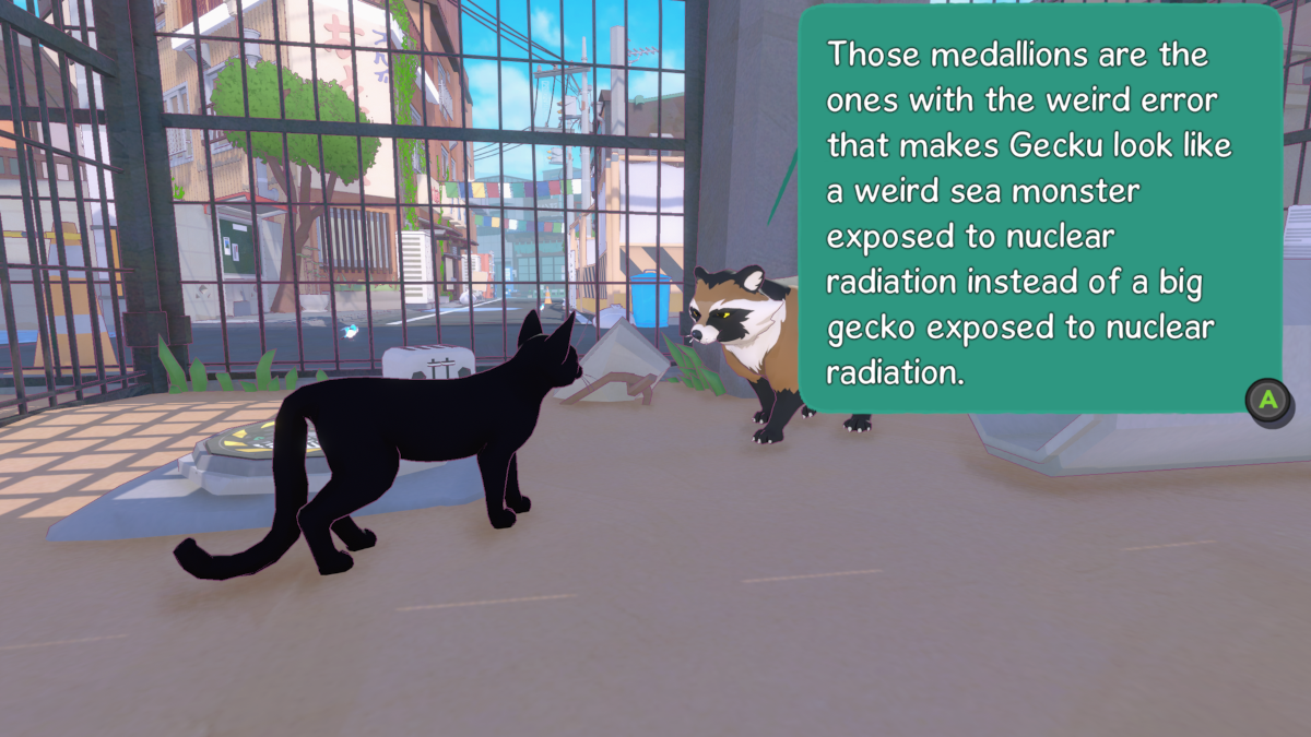 I’ve seen recent comparisons between Little Kitty, Big City and Stray, but really, the association there ends at “main character is a cat.” Little Kitty, Big City is much more like to Untitled Goose Game, both in gameplay and graphics. There is an interesting contrast between Little Kitty, Big City’s animals and the world they inhabit – living creatures, besides humans, are all bright-eyed and bushy-tailed, and quite garrulous in their own witty/opinionated/curious ways (except for the barking dogs and chirping birds). Even Little Kitty has quite the formidable vocabulary! The amusing conversations that happen between cat and creature certainly help keep things lively, and is worth talking to whomever happens to cross Little Kitty’s path.