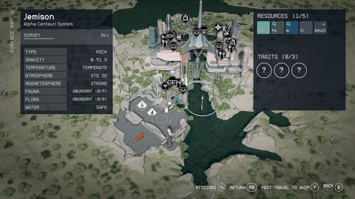 And what about all those valleys and hills on one thousand planets to scour? (How’s that for a segue!) Wayfinding in Starfield was, and still is, it’s own kind of mess. Bethesda games have never been known for their awesome maps, but at least they have them. The only maps Starfield had when it was first released were planetary topographical maps that were just as hard to read as a “local” map in a Fallout game. But, there were no maps for the main settlements, meaning that sheer memorization was the only way to get to that one place with that one supplier of that one thing you always needed. Now, there are maps for various settlements, and they aren’t half-bad. Could they be better? Sure. Did they make it so that you have to re-visit all the locations in a given settlement so that they can become fast-travel points? Yes. But then, did they add settlement location icons to your on-screen compass? Yes! That’s the real kicker, because it makes locating spots in settlements so much easier, and you then don’t even need to bother with the full map if you don’t want to.