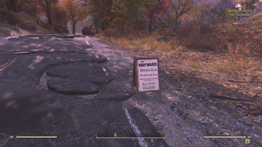 Upon leaving, if you wanted something to do, your first stop was a Mr. Handy right outside the vault. You’d ask if it had seen the overseer, and onward you’d go to follow her tracks. Currently though, while you can still ask that robot about the overseer, you have to talk to two “new” people outside the vault if you want to progress. They will kick off Wastelanders content, which you have to follow for a couple quests if you want to get to the original storyline. Because it used to be that tracking the overseer would lead you to her first holotape at a small camp south of Vault 76. Now, that holotape lives with the proprietor of a settlement called The Wayward, and you have to help her before she’ll give you the overseers’ tape. Once I had the tape, I let that questline be and returned to the original story.