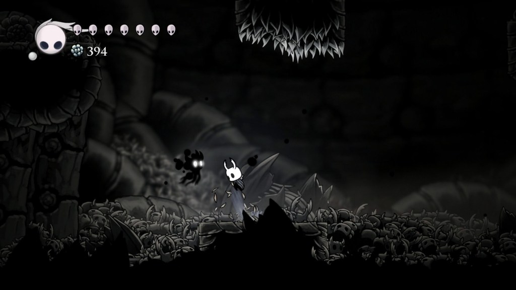 Hollow Knight is a challenging Metroidvania about a bug who travels to the dead kingdom of Hallownest, which has been ravaged by a terrible infection, leaving very few inhabitants alive and sane. This game is no stranger to dark things, and sometimes it veers off into outright horror. This is especially apparent in two locations found at the bottom of the map, Deepnest (which Hatm0nster has just covered) and the Abyss of Ancient Basin. For those who are okay with major spoilers for the plot of Hollow Knight, “these words are for you alone”.