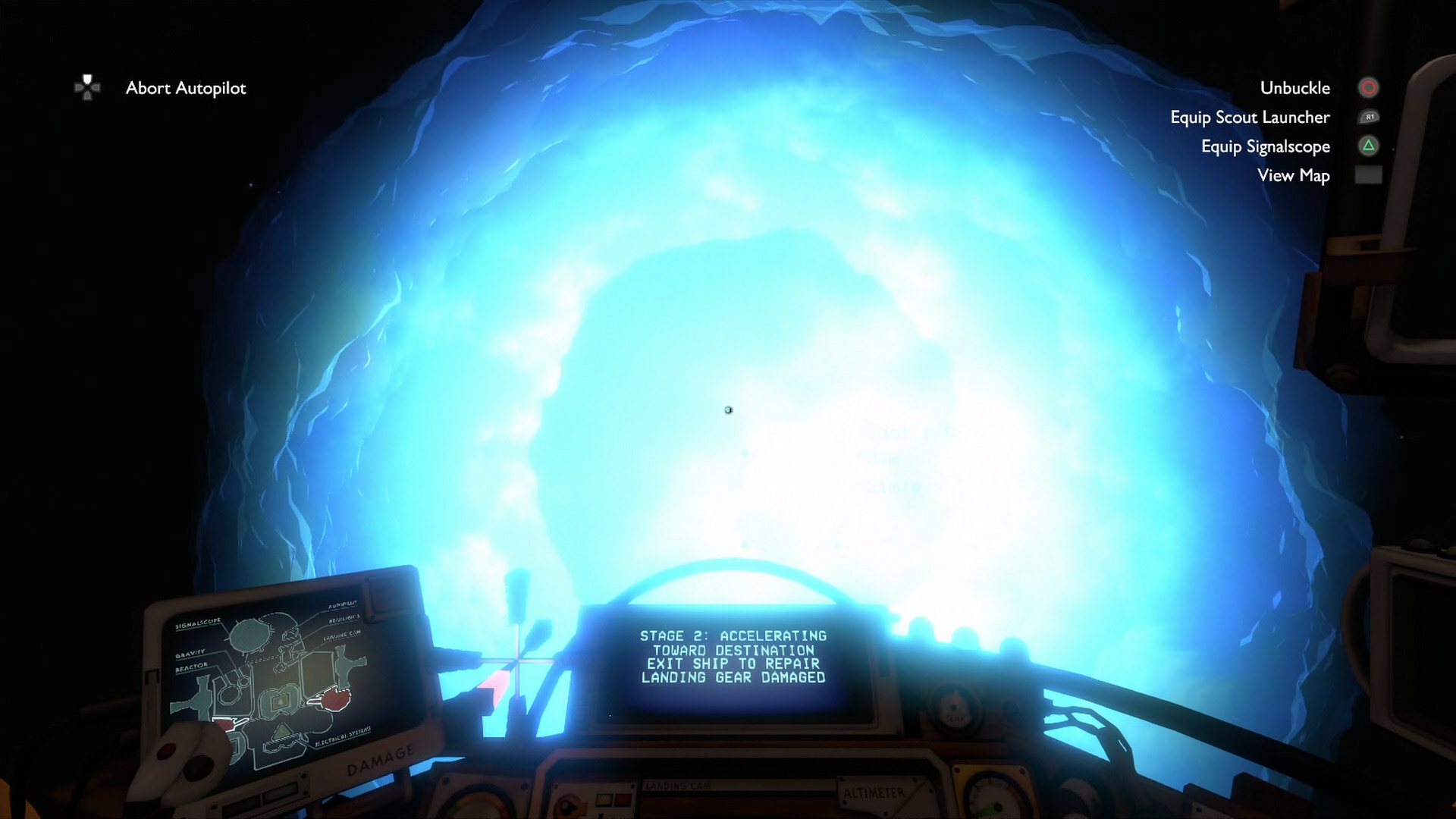 When I first reached the Eye of the Universe, I had no idea what to expect. And if I had anticipated answers, I didn’t get them. Looking out the window of our borrowed Nomai vessel and laying eyes on the Eye is an absolutely surreal experience. From here, it just looks like some sort of purple, crackling energy. And far, far beyond it, our sun. Our dying sun. Soon enough, it explodes into a supernova, expanding into a white ball of light before fizzling out. Our solar system is gone. And this time, we won’t reset to 22 minutes in the past. This is our last chance. Whatever happens now, there’s no going back. Better make it worth it.