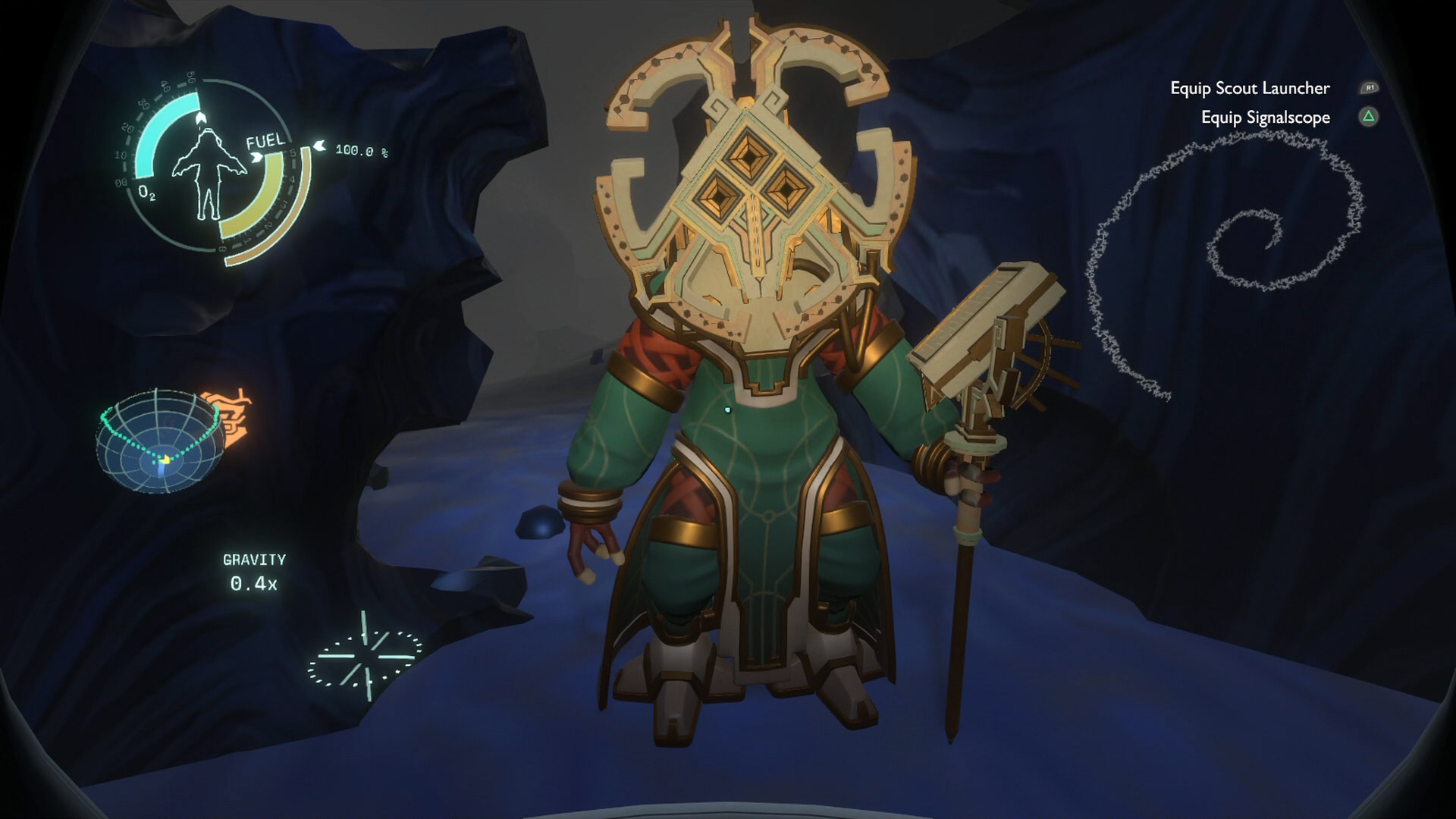 Setting foot on the marbled blue and black landscape outside and seeing the last sparks of the sun glowing a brilliant blue against the blackness of space, it hits you that everyone you ever knew is now dead. In fact, your entire planet is gone. You’re the only survivor, lightyears away from all that you ever knew. It’s isolating. It’s…better not dwell on it. We’ve finally arrived at the fabled Eye the Nomai had been so keen to research.