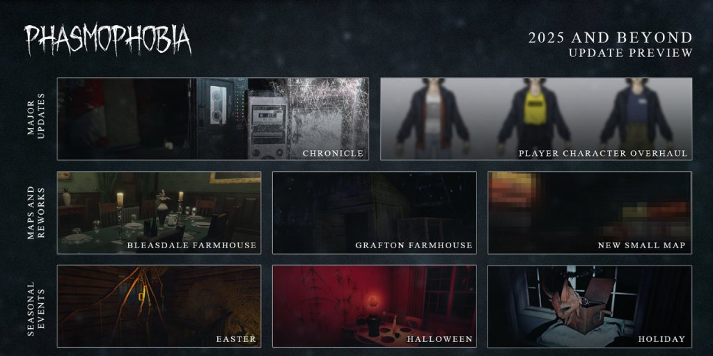 Two existing maps, Bleasdale Farmhouse and Grafton Farmhouse, are being reworked. These reworks include layout redesigns, new locations for ghosts to haunt, new areas to explore and visual overhauls. There’s also a new, small scale map coming later in the year too. All areas of game will also see tweaks for the Easter, Halloween and Christmas (“Holiday”) seasonal events. Also, it seems that the team has even more planned for 2026, so fans have a lot to look forward to.