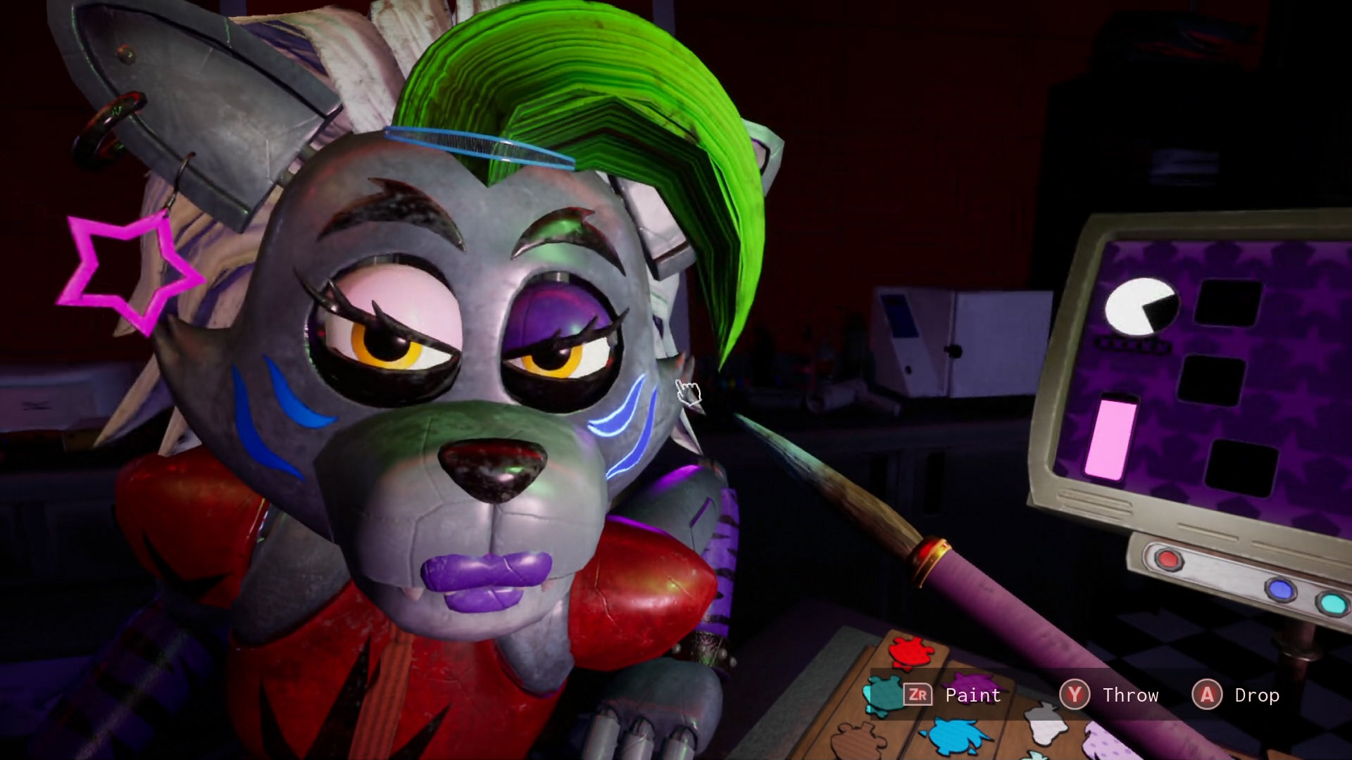 I think one thing that made these games more fun than your average mini-game is how involved some of the tasks are. I feel like a lot of mini-games that can be found in most games are just simple diversions without a lot to offer. In Help Wanted 2, you will be preparing various orders in Food Prep or figuring out how to take care of Helpy’s injuries in First Aid or fixing the Carousel while keeping Moon away. Some of the mini-games are pretty darn charming, as is the case with Captain Foxy’s Log Ride and the various Fazerblast mini-games, while others are kind of amusing, such as when you’re forced to deal with impatient Staff Bots in Food Prep or trying to choose the right makeup and accessories for Roxy while she constantly demands that you look at her. Sun’s dialogue in the first Arts & Crafts level is also pretty funny, as he takes children’s art projects far too seriously, and you even have the option to eat the crafts, thus ticking off this already impatient animatronic even more!