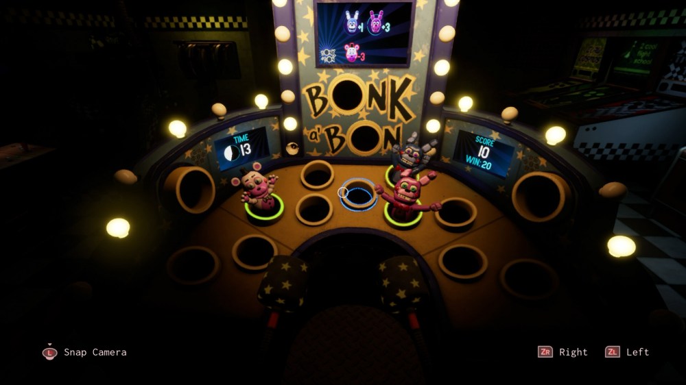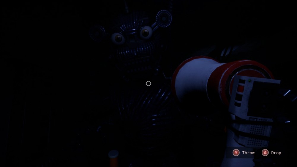 9: Endo Warehouse – In this level, you’re apparently training young endoskeletons by playing a matching game. But you’re not matching pairs of pictures, but rather, pictures that are associated with each other (such as a pool is paired with swimming). Some of these pictures can be a little hard to figure out, though, so just match the background colors. While you have unlimited time to memorize the pairs, the challenge comes from keeping the wandering endos away with the Fazcam. They come from two different directions, but the intensity of the rumble in your controller will tell you how close they’re getting. Keep in mind that they won’t go away when you flash them unless they’re super close. I really struggled with remembering the pairs while also keeping the endos away, so I’ll admit that I cheated my way through the level by pausing and writing down the pairs. But you can’t deny the results, as it makes everything way easier!
