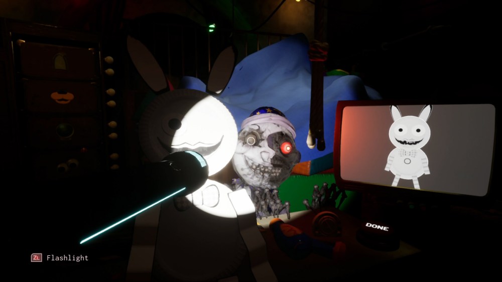 12: Arts & Crafts: Loft – That’s right, I think the more “difficult” Arts & Crafts level is actually easier. Initially, painting the picture fast enough is difficult, especially when the paint colors don’t match the screen that shows you what to copy. Fortunately, it helps that the screen has numbers associated with the colors, as do the paint cans, so either use the paint with the matching number or use a combination of paint that adds to the correct number. The two paper pals, however, don’t have a time limit, so you can take as long as you want, provided you keep Moon away and keep the flashlight charged. I just alternated between shining my light on Moon, then charging my flashlight while I complete a few steps on my art project, then locate Moon again, and repeat! Just be fast if you hear loud clattering noises because this means Moon’s appeared really close by, and he won’t give you much time before he attacks!