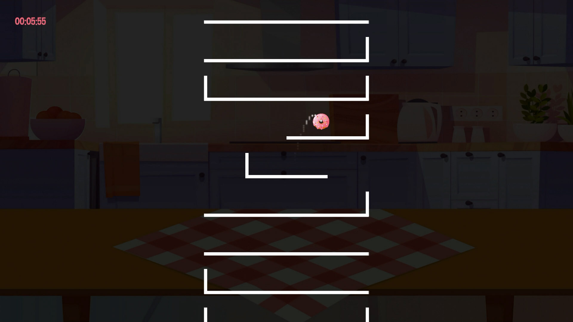 I don’t usually do much research when I download demos. They’re free, so there’s really nothing to lose but a little bit of time. With that said, I didn’t expect much from The Jumping Donut, and I didn’t get much, either. I guess I’d kind of describe this game as a puzzle-platformer. As the name implies, you play as a constantly rolling donut (that is, weirdly enough, described in the description as “juicy”) that can do nothing but jump and change directions when it bumps into a wall. Your goal is to navigate the platforms without falling off. It’s a really simple game, but I suppose it did require just a tiny bit of thought to plan out my next move.