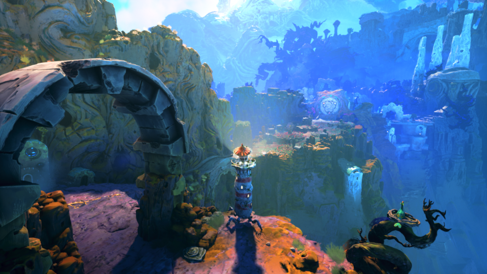 Reminiscent of a game like Herdling, no directions are given as to what one must do to progress. On-screen prompts appear whenever basic direction is needed; otherwise, there is no HUD, map, or quest text. The game doesn’t need any of that, because to intrude upon its visuals would be tragic. Having no IU means that the players can soak in every saturated inch of Keeper’s amazing landscapes. That said, though the world of Keeper appears vast in scope, it is primarily an on-rails experience. Some areas offer a bit to explore, but every region a player enters is laid out in meaningful ways. While there are a few secrets to uncover, there’s no fluff to the levels – every pathway leads to something, sometimes something extraordinary.