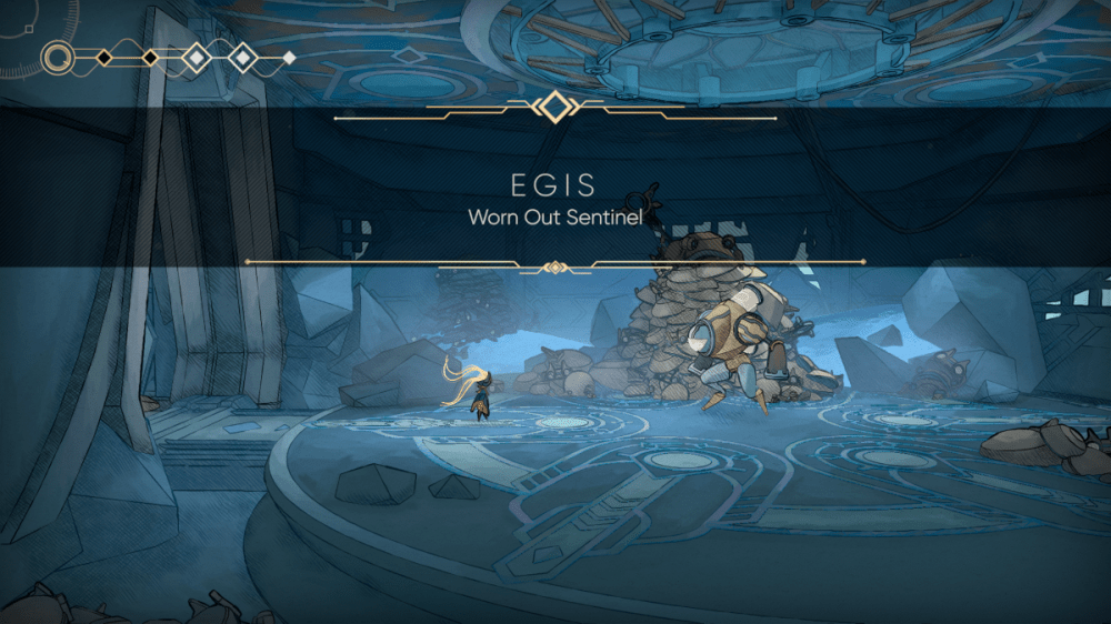 I’ve remarked before that my relationship with platformers, metroidvanias, what have you, has cooled quite a bit over the years. I will always have a soft spot for them, but no longer do I have to time to master them to the Super-Metroid-degree that I want. But MIO, it turns out, has an ace up its sleeve with regard to accessibility. For one, Mio can double jump from the start, which is an absolute boon and makes the game feel less burdensome from the get-go. Beyond that, there are three optional accessibility features that can be enabled. One prevents automatic attacks from all regular enemies – they only attack if Mio attacks first. Another regenerates Mio’s shields when she remains on the ground for a short time. And a third “erodes” bosses, making them easier to battle each time they are faced.