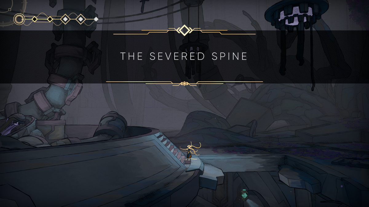 Or, that’s what I think is going on. The game’s story is presented rather abstractly, in a non-linear fashion. But as with many platformers, story tends to take a backseat to the action, because one’s focus is one traversal, exploring and opening a map, finding upgrades, and boss battles. A key in MIO’s success as memorable platformer lies in how well its overarching story is interwoven with its action and whatever else lies in store. At the very least, MIO is so visually stunning, it’s enough to keep me both invested and mesmerized. Whatever style(s) the game is drawn from, I just want more.