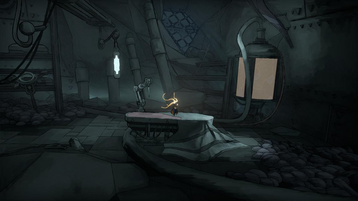 At its outset, MIO’s story is a little oblique. Players take on the role of a character, Mio, that must guide a techno-mechanical ship to safety. The ship, called The Vessel, is inhabited only by robots, as its human crew has perished. Some of these robots are designed to help Mio in her quest; others are enemies. Ultimately, Mio must locate several “pearls” that together will somehow help The Vessel complete its voyage.