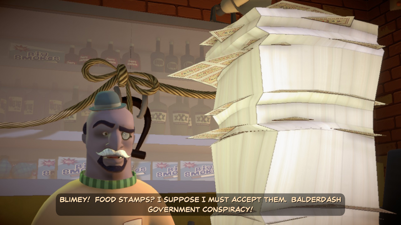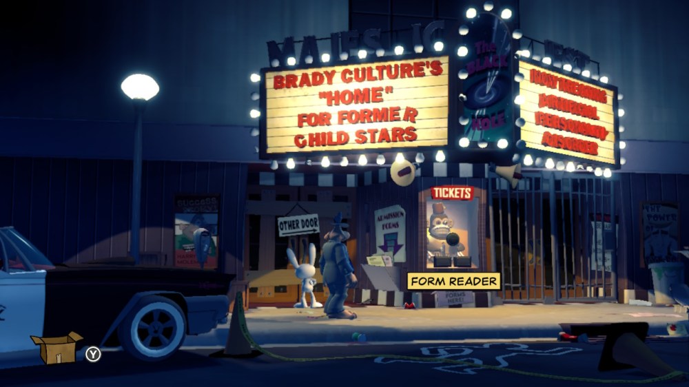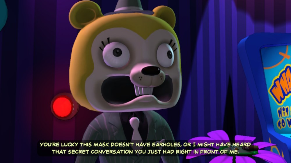 Having only ever known Sam & Max on the PC in 2D, with a keyboard and mouse, in Save the World, I was pleasantly surprised to see them wonderfully rendered in 3D with environments to match. Sam served as the game’s primary protagonist and was at the helm of the controls; though at times, Max popped up as an option to control during some conversations. Sam’s movement was controlled either manually via the analog stick or by selecting on-screen indicators revealed with the left bumper. I quickly preferred to use these cues rather than wander aimlessly. Also, there was quite a lot to look at in the game, and almost every interactable item came with a trademark quip from either/both Sam and Max. I was extremely pleased to see that Sam and Max’s witty and occasionally crass commentary hadn’t been abandoned. Truly, half the fun of Sam & Max game comes from experiencing its wacky writing – you never know what they’re going to say next! – and it helped allay its more awkward moments, of which there were many.